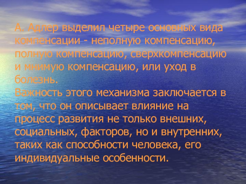 Слайд 29А. Адлер выделил четыре основных вида компенсации - неполную компенсацию, полную