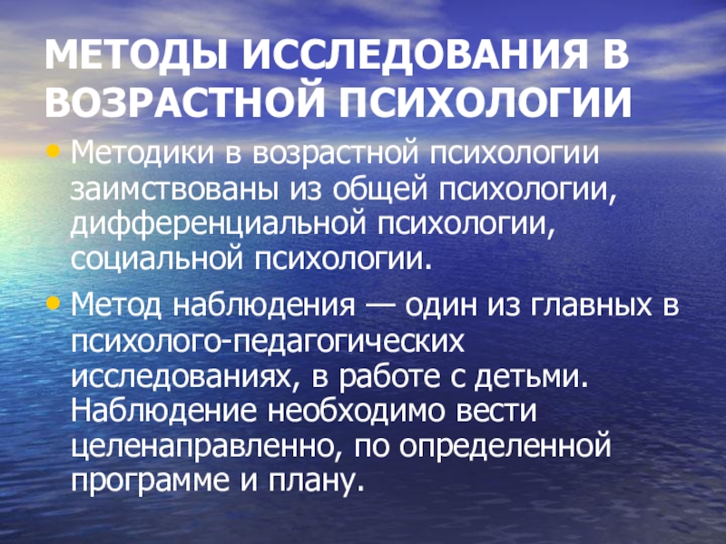 Слайд 7МЕТОДЫ ИССЛЕДОВАНИЯ В ВОЗРАСТНОЙ ПСИХОЛОГИИ