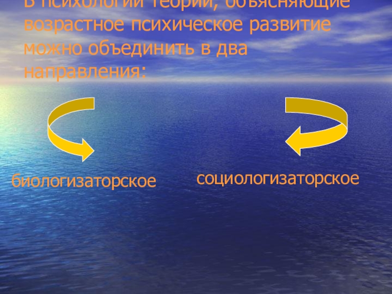 Слайд 10В психологии теории, объясняющие возрастное психическое развитие можно объединить в два