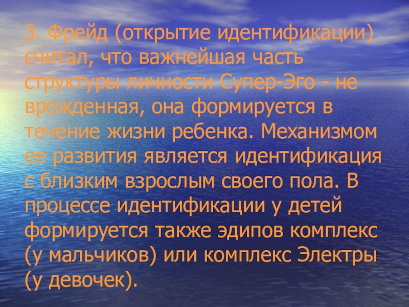 Слайд 283. Фрейд (открытие идентификации) считал, что важнейшая часть структуры личности Супер-Эго