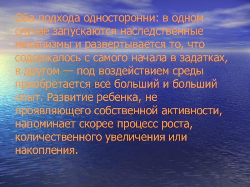 Слайд 13Оба подхода односторонни: в одном случае запускаются наследственные механизмы и развертывается