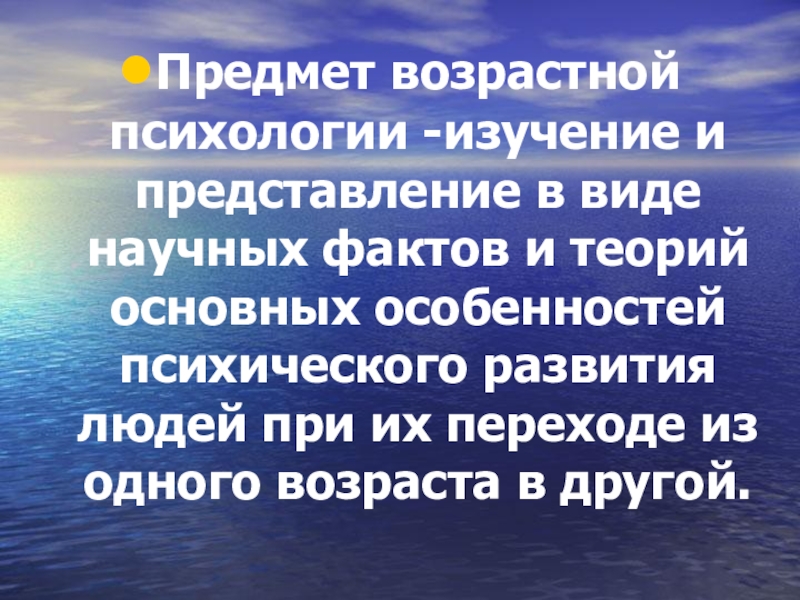Слайд 2Предмет возрастной психологии -изучение и представление в виде научных фактов и