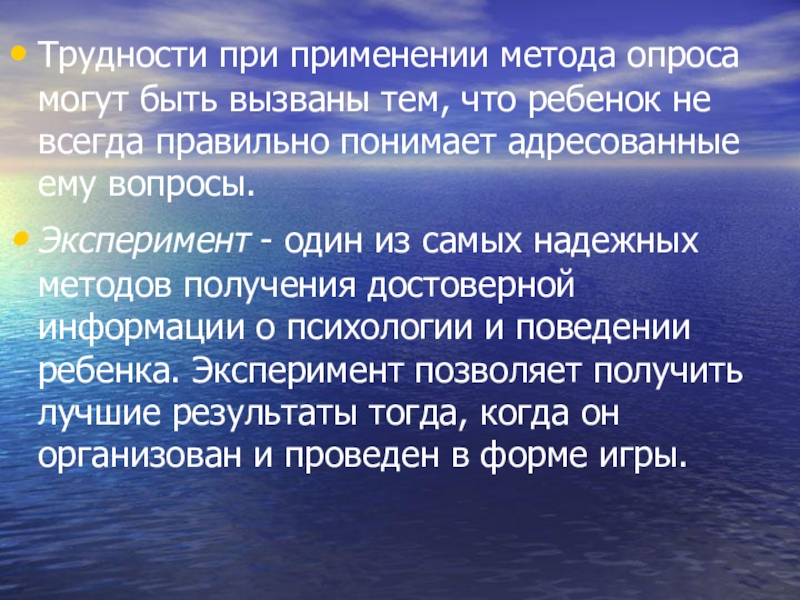 Слайд 8Трудности при применении метода опроса могут быть вызваны тем, что ребенок