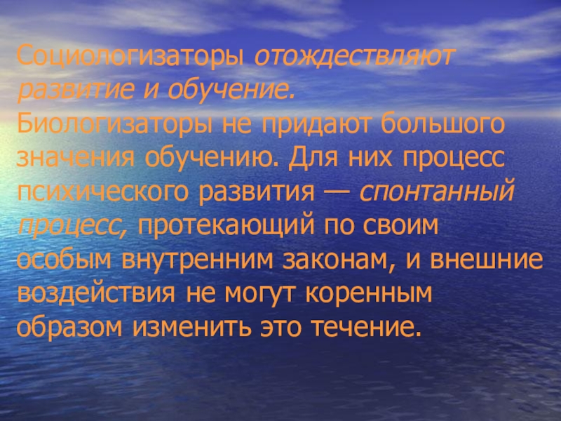 Слайд 17Социологизаторы отождествляют развитие и обучение.