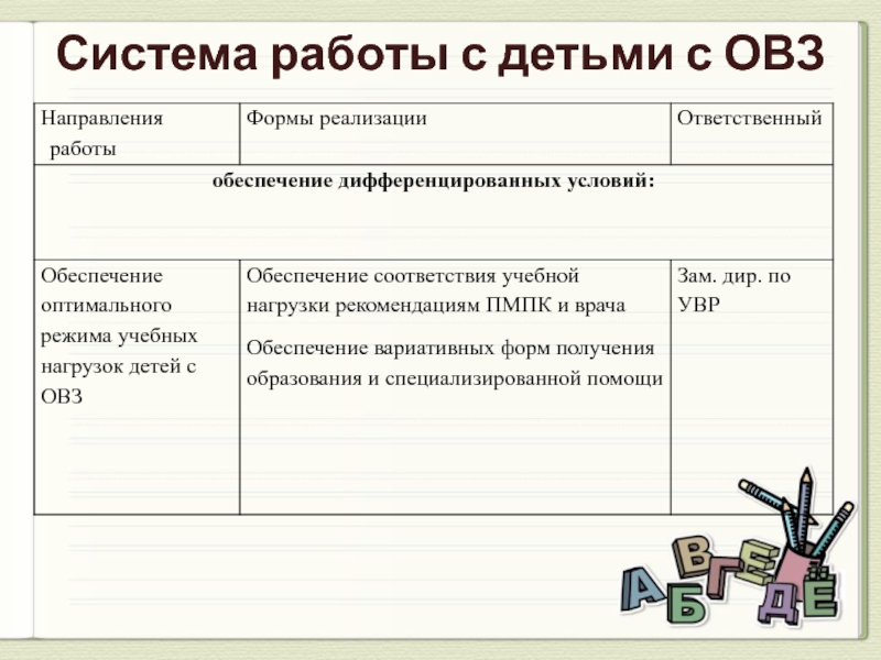 Дети с ограниченными возможностями здоровья – это дети, состояние здоровья которых препятствует освоению образовательных программ в неспециальных условий обучения и воспитания.