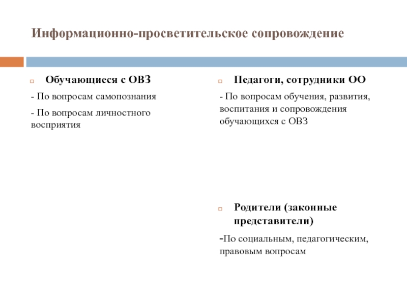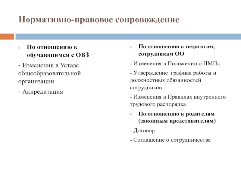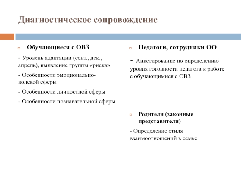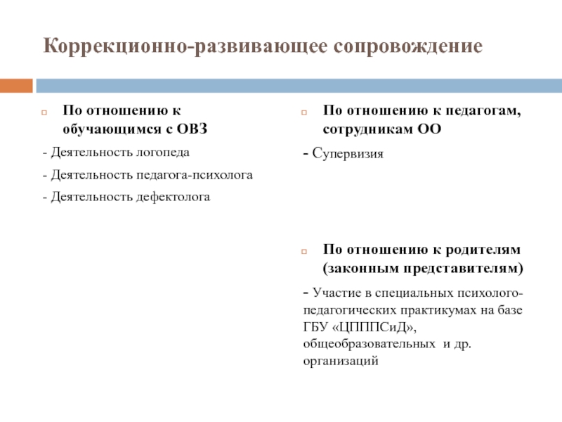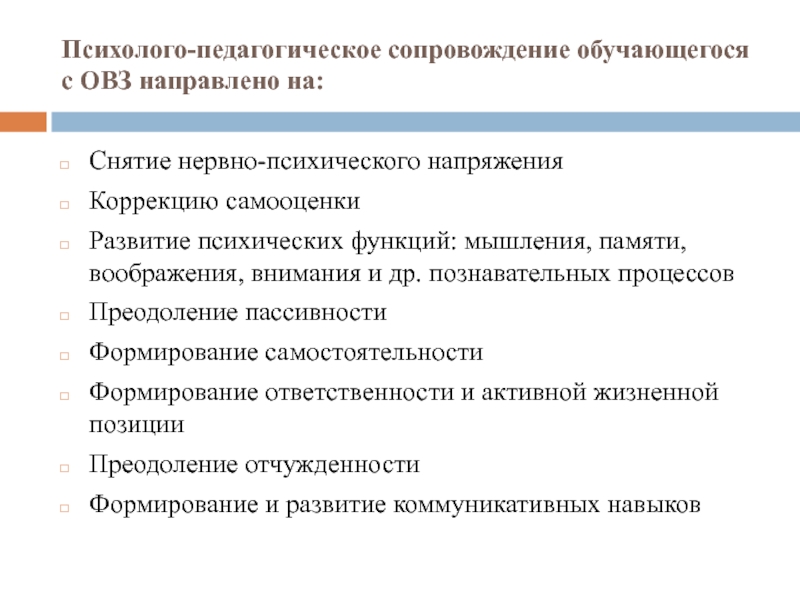 Слайд 4Психолого-педагогическое сопровождение обучающегося с ОВЗ направлено на:
