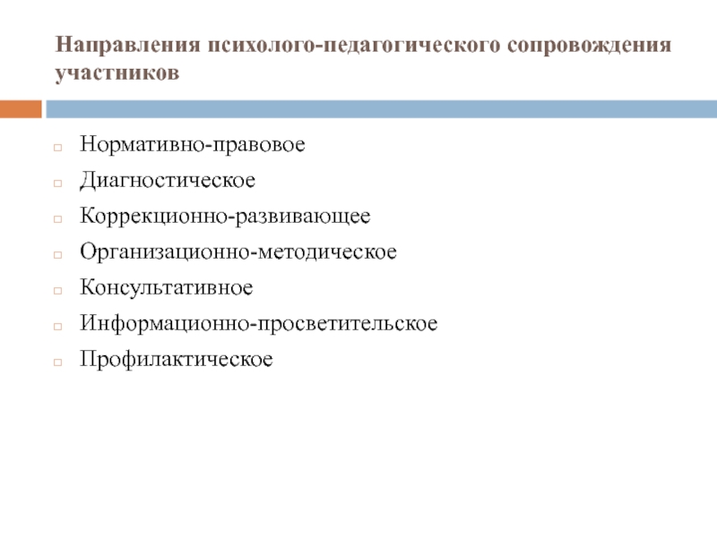 Слайд 7Направления психолого-педагогического сопровождения участников