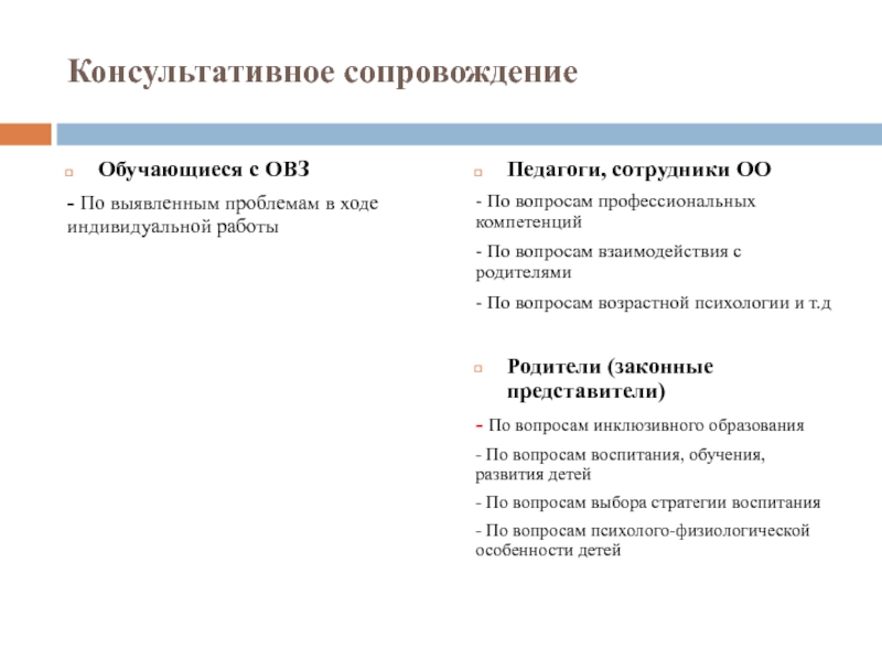 - По вопросам обучения, развития, воспитания и сопровождения обучающихся с ОВЗ