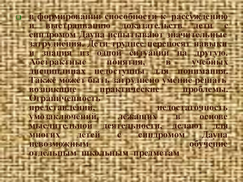 в формировании способности к рассуждению и выстраиванию доказательств дети с синдромом