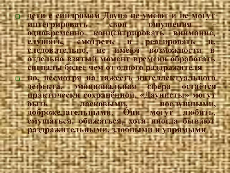 дети с синдромом Дауна не умеют и не могут интегрировать свои