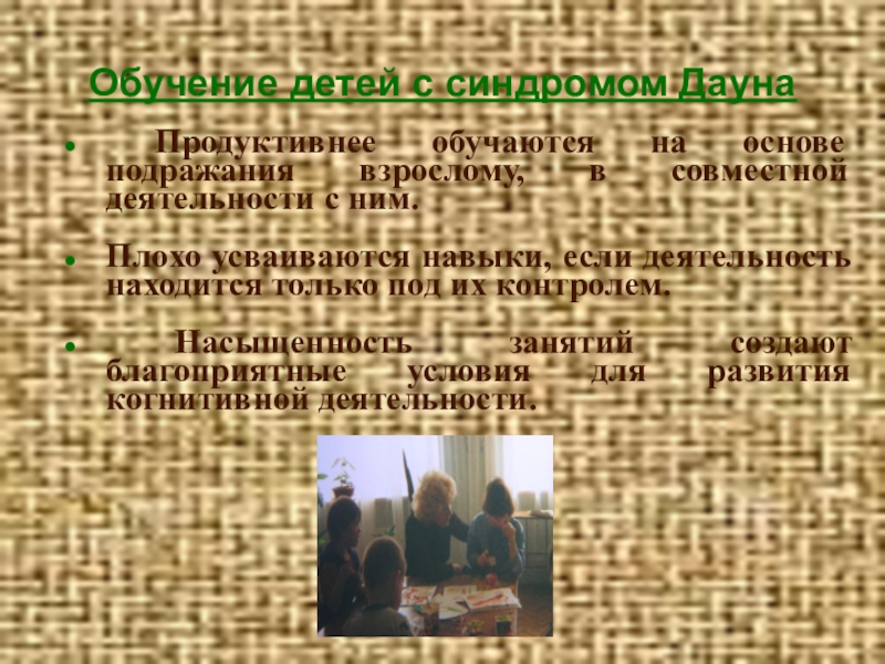 Слайд 16Обучение детей с синдромом Дауна
