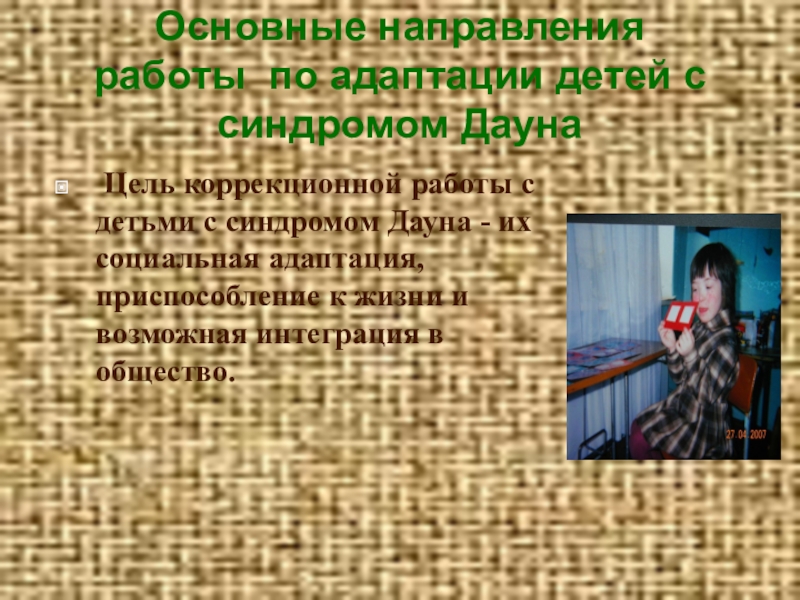 работы с детьми с синдромом Дауна - их социальная адаптация, приспособление к жизни и возможная интеграция в общество.