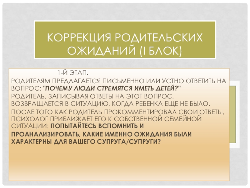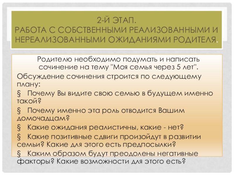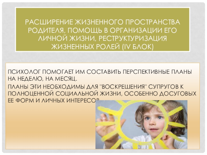 Планы эти необходимы для "воскрешения" супругов к полноценной социальной жизни, особенно досуговых ее форм и личных интересов.