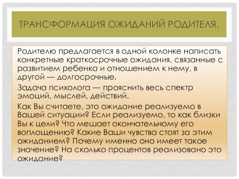 Психолог помогает им составить перспективные планы на неделю, на месяц.