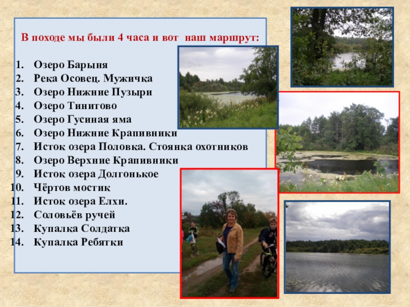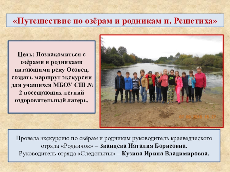Провела экскурсию по озёрам и родникам руководитель краеведческого отряда «Родничок» – Званцева Наталия Борисовна.