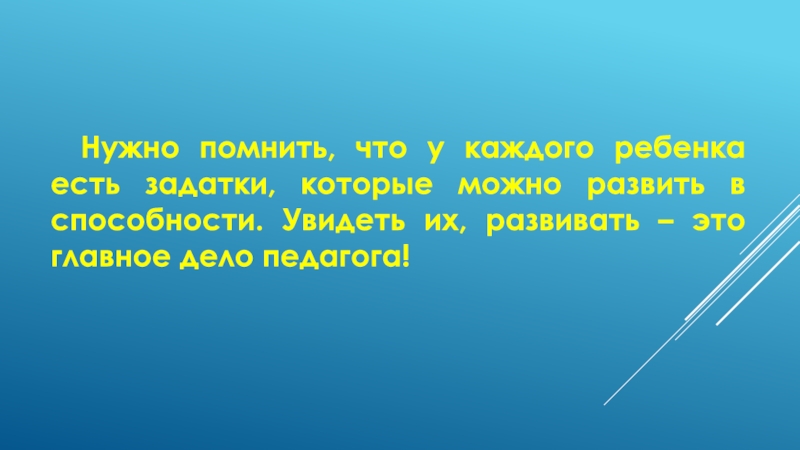 Нужно помнить, что у каждого ребенка есть задатки, которые можно развить в способности. Увидеть их, развивать –