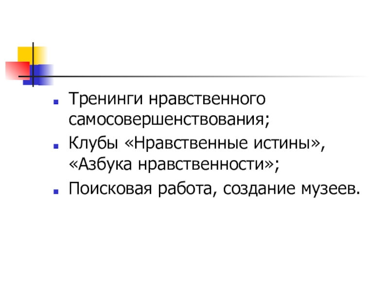 Тренинги нравственного самосовершенствования;
