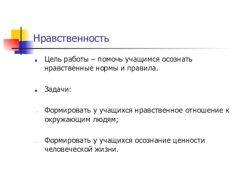Цель работы – помочь учащимся осознать нравственные нормы и правила.