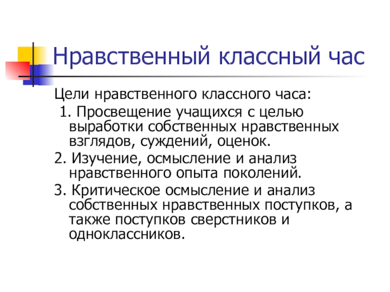 Цели нравственного классного часа: