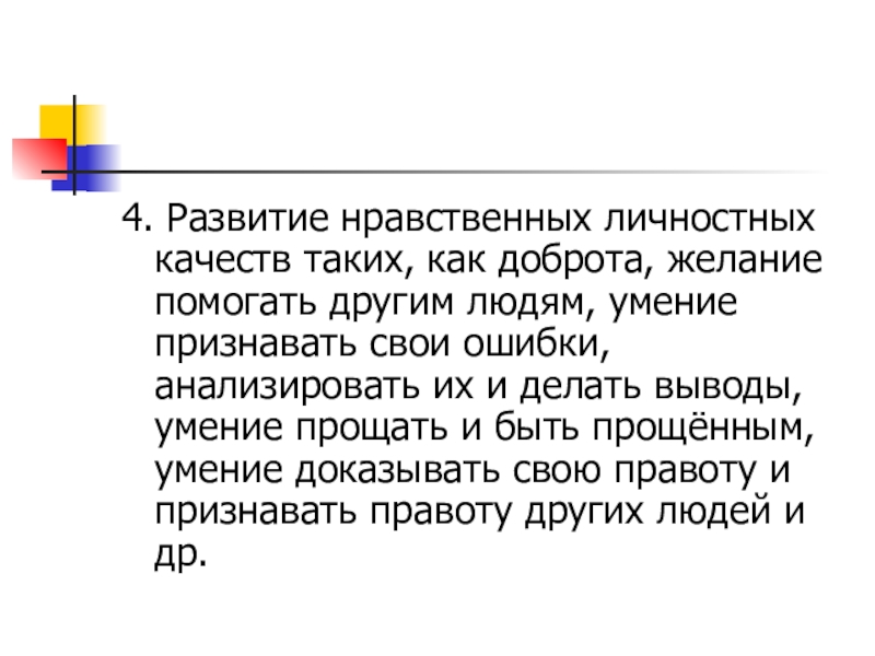 4. Развитие нравственных личностных качеств таких, как доброта, желание помогать другим