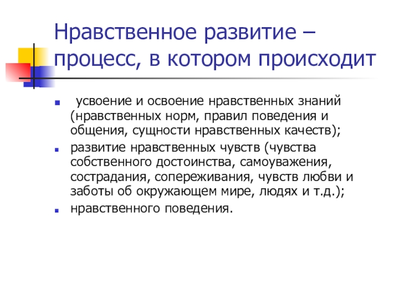 Слайд 3Нравственное развитие – процесс, в котором происходит