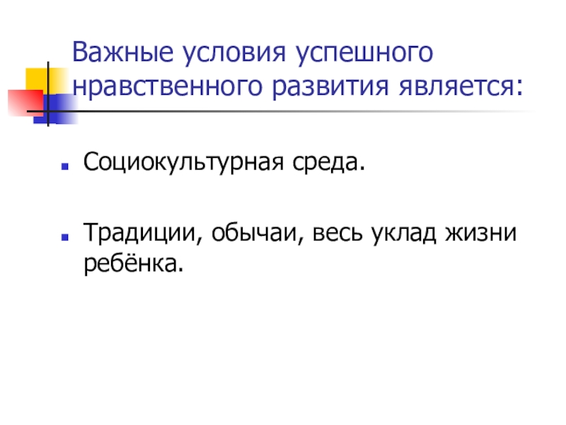 Слайд 6Важные условия успешного нравственного развития является: