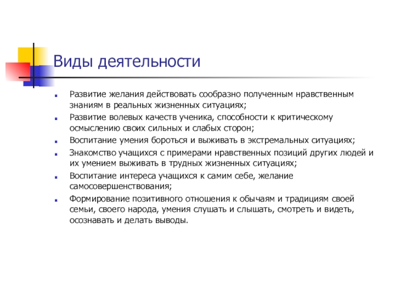 Слайд 10Виды деятельности