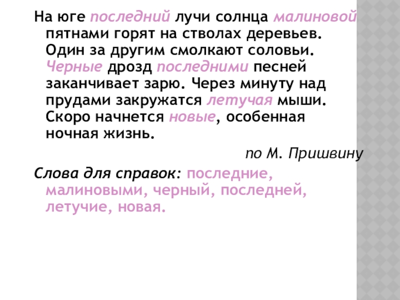 Слова для справок: последние, малиновыми, черный, последней, летучие, новая.