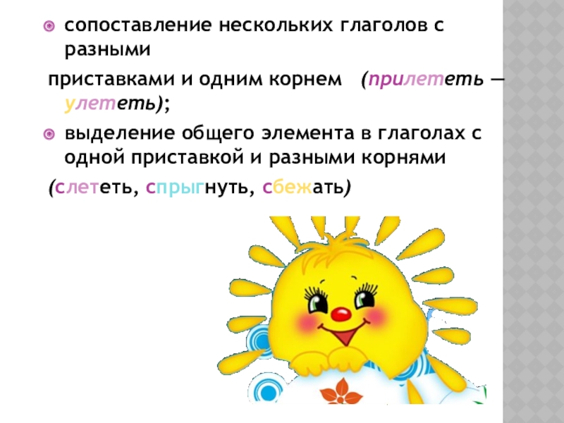 уяснение лексического значения глагола, от которого образуется новое слово с приставкой (лететь);