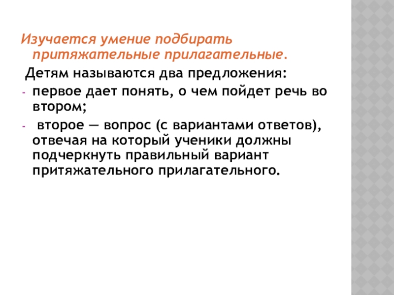 Слайд 32Изучается умение подбирать притяжательные прилагательные.