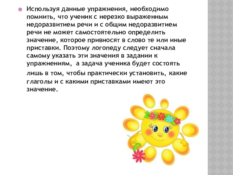 Слайд 8Используя данные упражнения, необходимо помнить, что ученик с нерезко выраженным недоразвитием