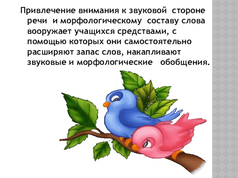 Слайд 25Привлечение внимания к звуковой стороне речи и морфологическому составу слова вооружает