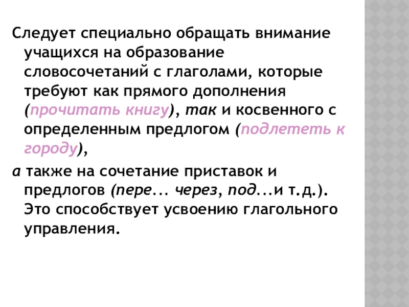 Слайд 5Следует специально обращать внимание учащихся на образование словосочетаний с глаголами, которые