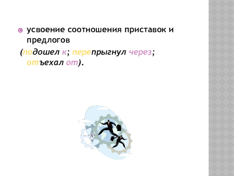 а также на сочетание приставок и предлогов (пере... через, под...и т.д.). Это способствует усвоению глагольного управления.