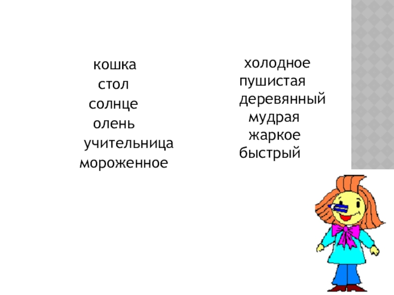 Слайд 28 Детям предлагаются два столбика слов. В первом — существительные, во