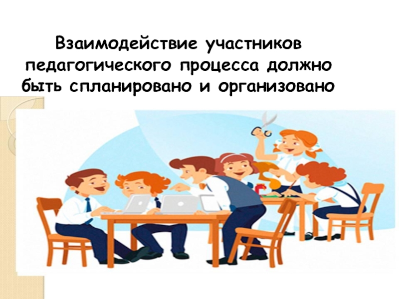 Слайд 5Взаимодействие участников педагогического процесса должно быть спланировано и организовано