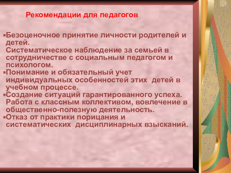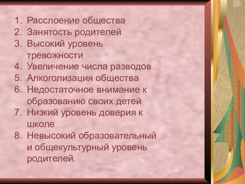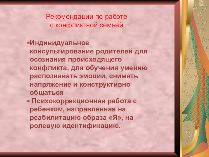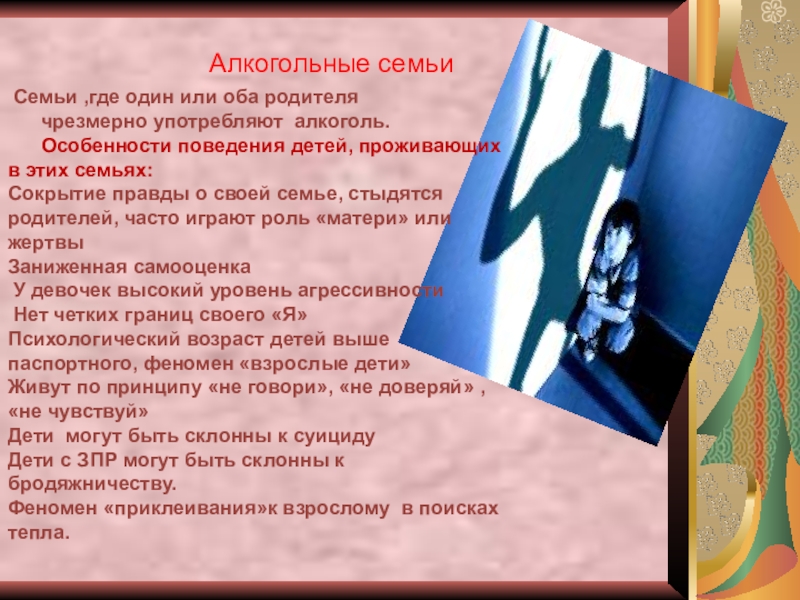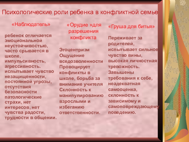 Переживает за родителей, испытывает сильное чувство вины, высокая личностная тревожность.