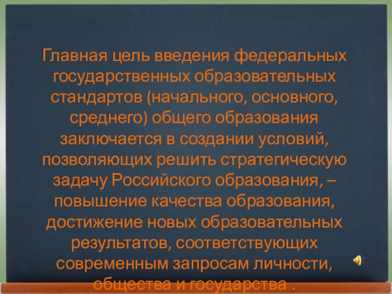 Слайд 2Главная цель введения федеральных государственных образовательных стандартов (начального, основного, среднего) общего