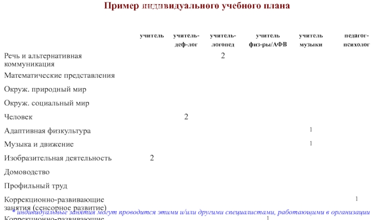 (приоритетные образовательные области, учебные предметы, коррекционные занятия)