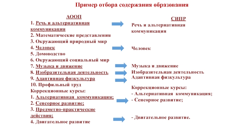 Выбор актуальных для обучающегося учебных предметов и коррекционных курсов (из учебного плана АООП в ИУП)