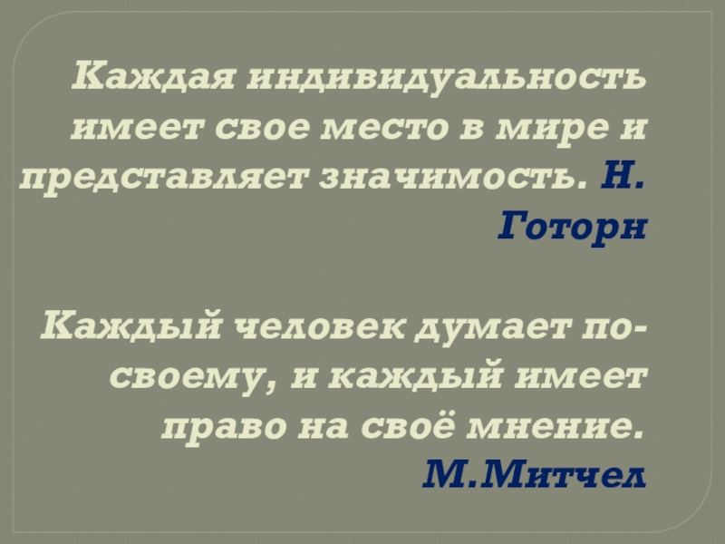 У нас есть свое мнение, и мнение окружающих не играет для нас никакой роли.