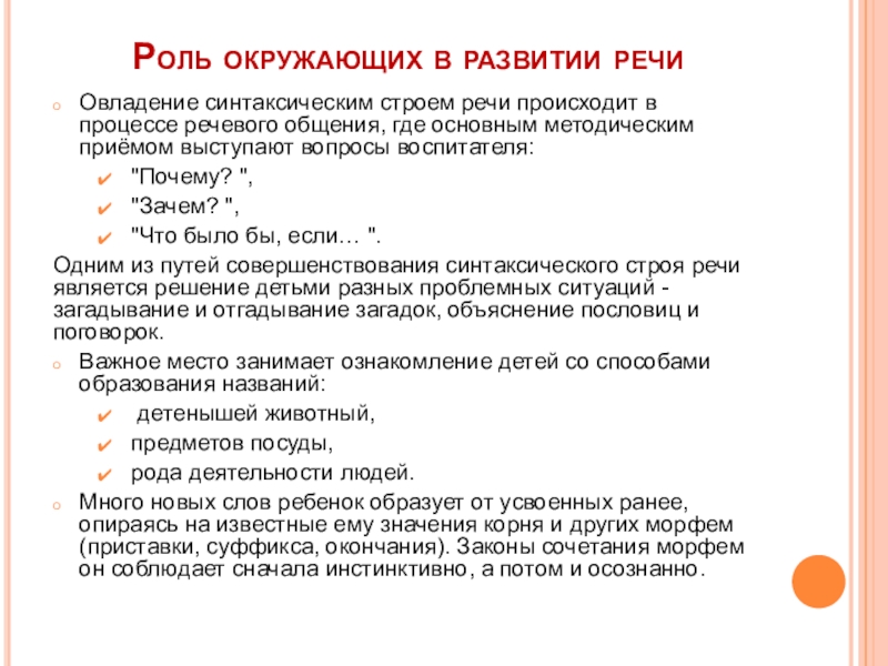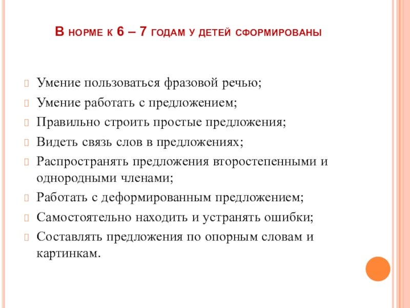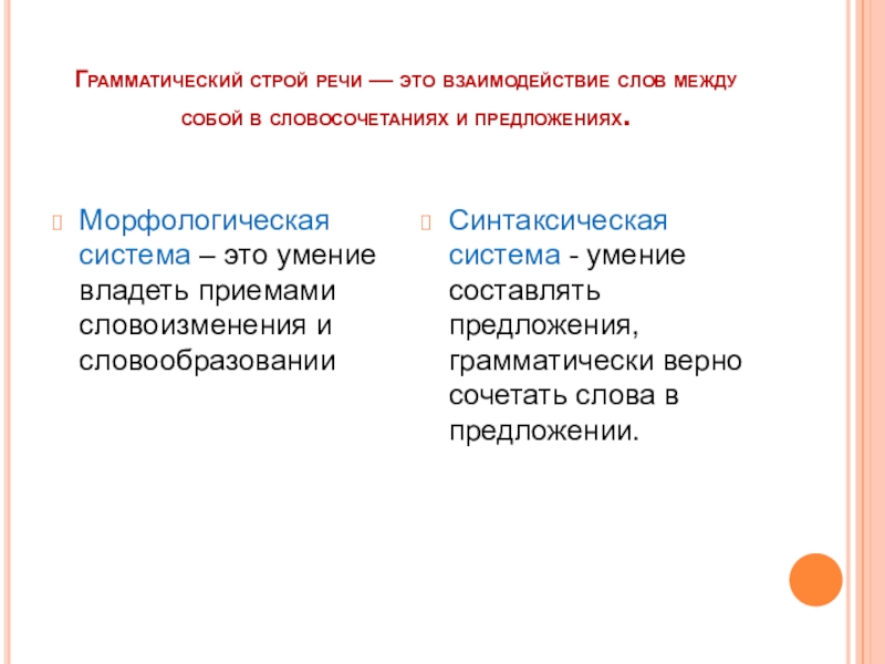 Синтаксическая система - умение составлять предложения, грамматически верно сочетать слова в предложении.