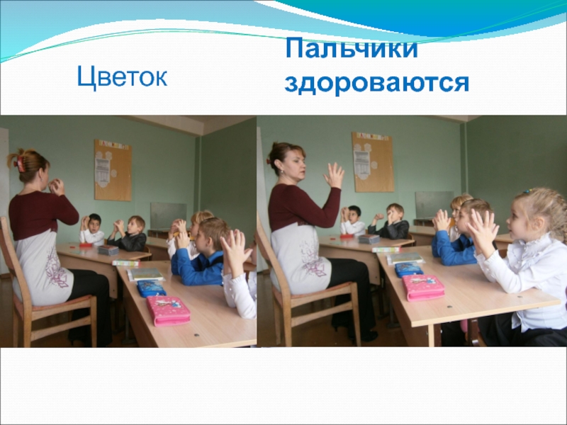 1. Показ при помощи рук различных изображений (“очки”, “стул”, “колокольчик”, ‘зайка” и.т.д.), которыми может сопровождаться чтение потешек или сказок;