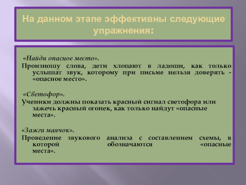 в ладоши, как только услышат звук, которому при письме нельзя доверять - «опасное место».