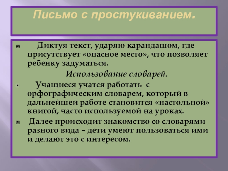 Слайд 13Письмо с простукиванием.