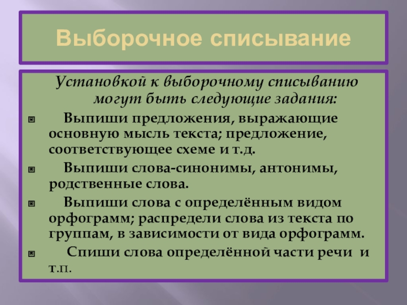 Слайд 7Выборочное списывание