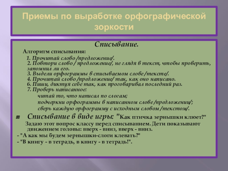 Приемы по выработке орфографической зоркости