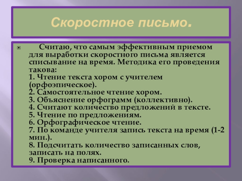 Считаю, что самым эффективным приемом для выработки скоростного письма является