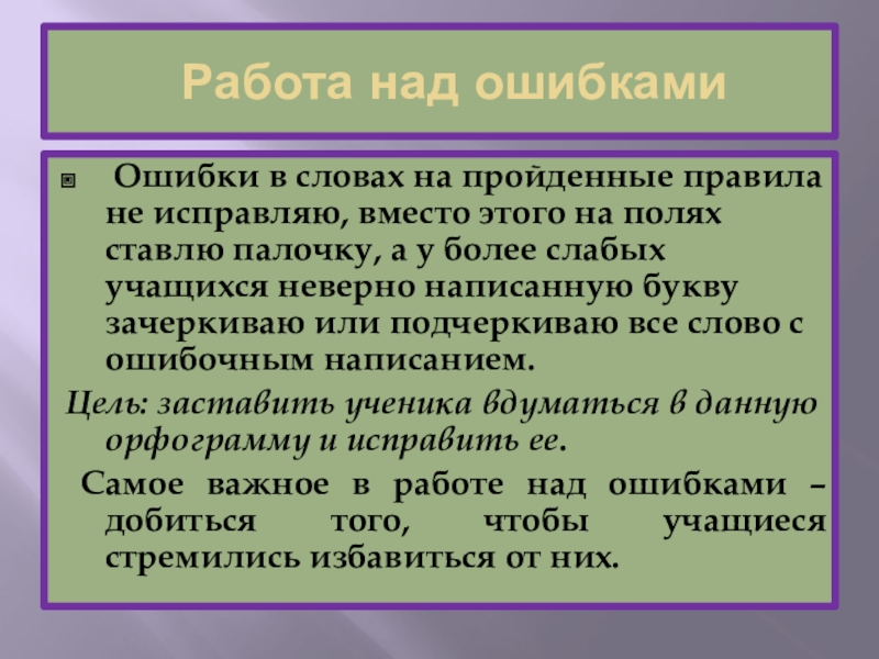 Самое важное в работе над ошибками – добиться того, чтобы учащиеся стремились избавиться от них.