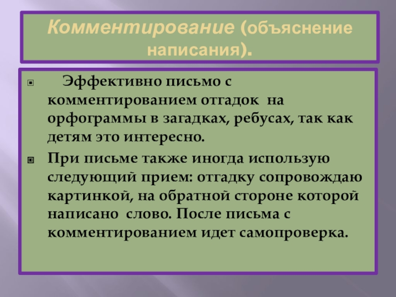 Эффективно письмо с комментированием отгадок на орфограммы в загадках, ребусах, так